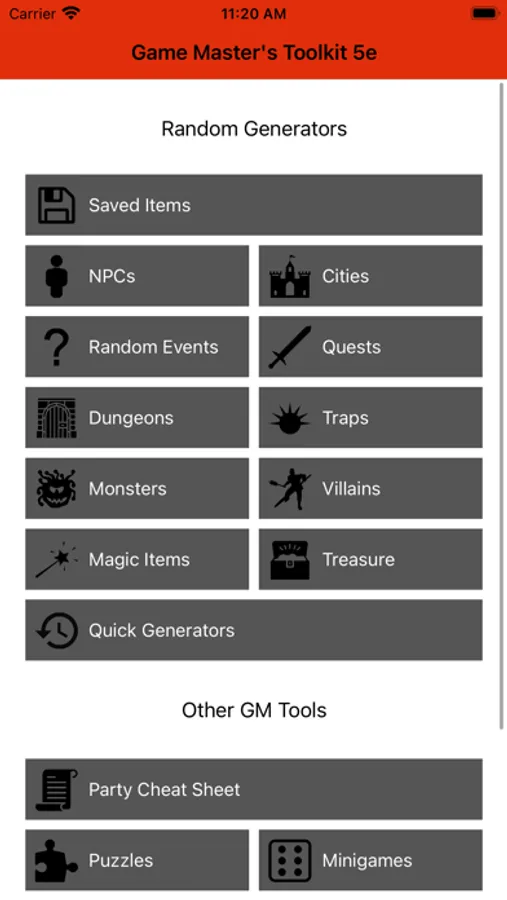 Game Master’s Toolkit 5e allows GMs to generate random content for their tabletop roleplaying games! Designed for the world's most popular roleplaying game, but highly compatible with other TTRPG systems.
