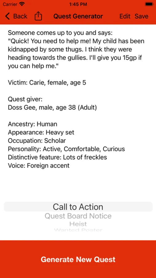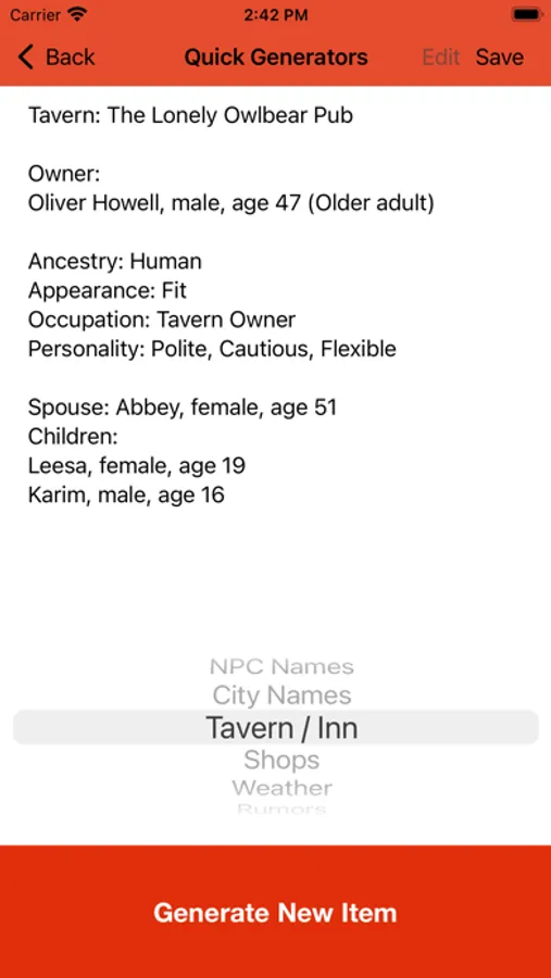 – Use the Quick Generator to create names, taverns, shops, rumors, and more!