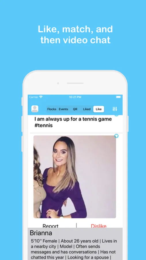 Like a photo or text that is listed on someone's profile to match with them. You can chat or video chat with any matches.