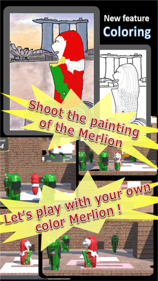 - If 'BIG' sign appear, try to tap DASH button. Your Merlion will be changed stronger !