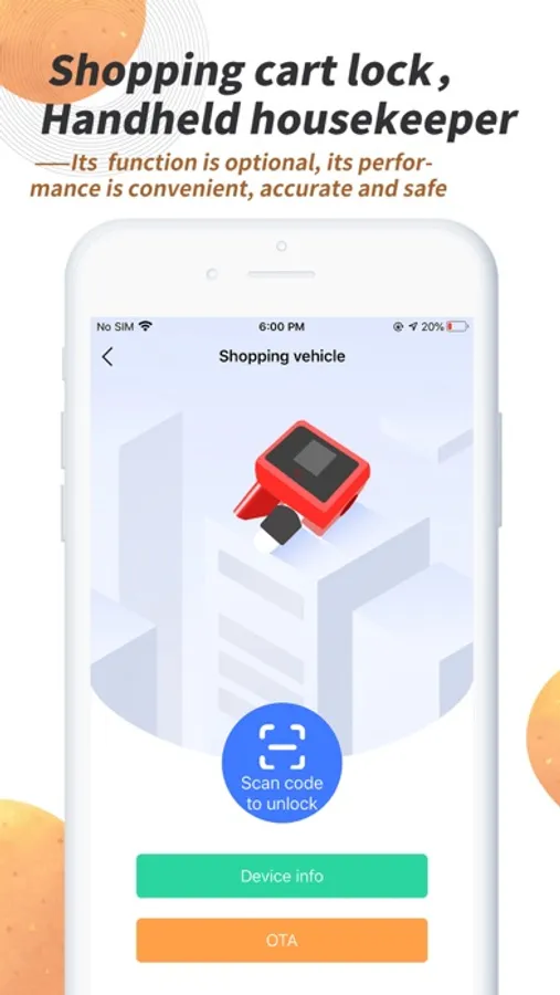 This application is a shopping cart smart lock control software. By scanning the QR , the corresponding shopping cart smart lock code of the shopping cart smart lock with a mobile phonecan be unlocked and the information of the scanned shopping cart smart lock can be read.