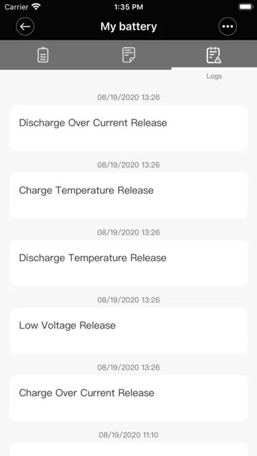 *View the log of battery events. While the app is open on your mobile device you can also receive alerts.