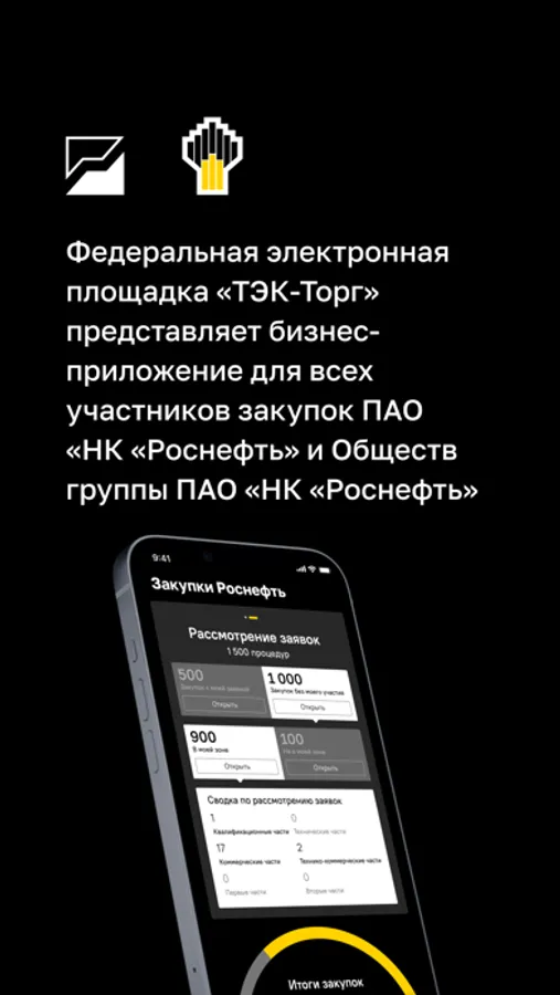 Федеральная электронная площадка «ТЭК-Торг» представляет бизнес-приложение для всех участников закупок ПАО «НК «Роснефть» и Обществ группы ПАО «НК «Роснефть»