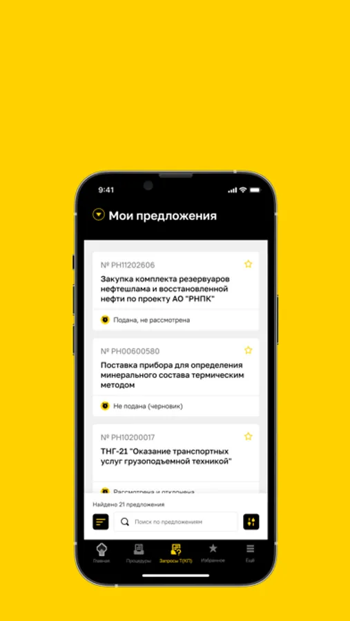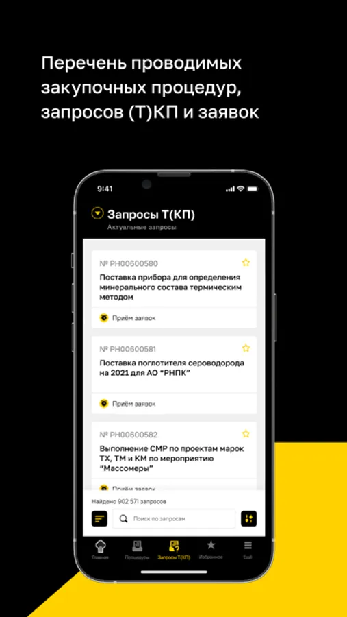 • Возможность формирования списков «избранных» закупочных процедур и/или запросов (Т)КП.