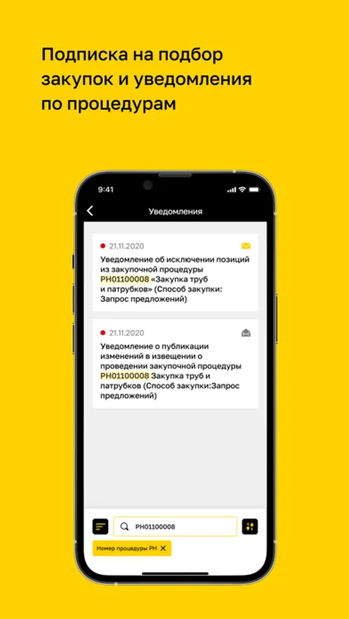 • Подписку на уведомления об изменениях по избранным процедурам.