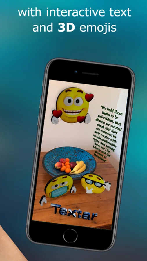Create words, phrases or entire paragraphs of 3D text in Augmented Reality, and add 3D AR Emojis.