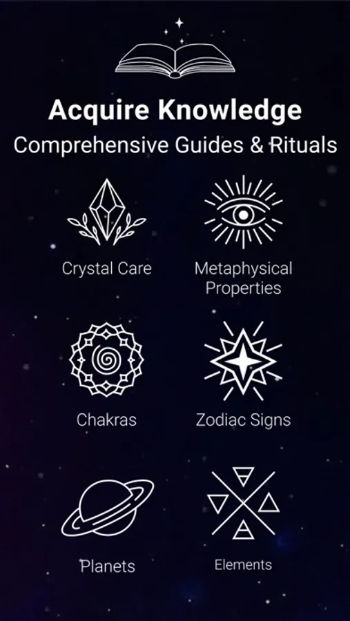 • Connect with crystals that align with Zodiac Signs, Planets, or Elements, and understand their relevance to different Chakras.