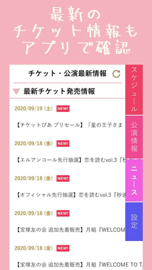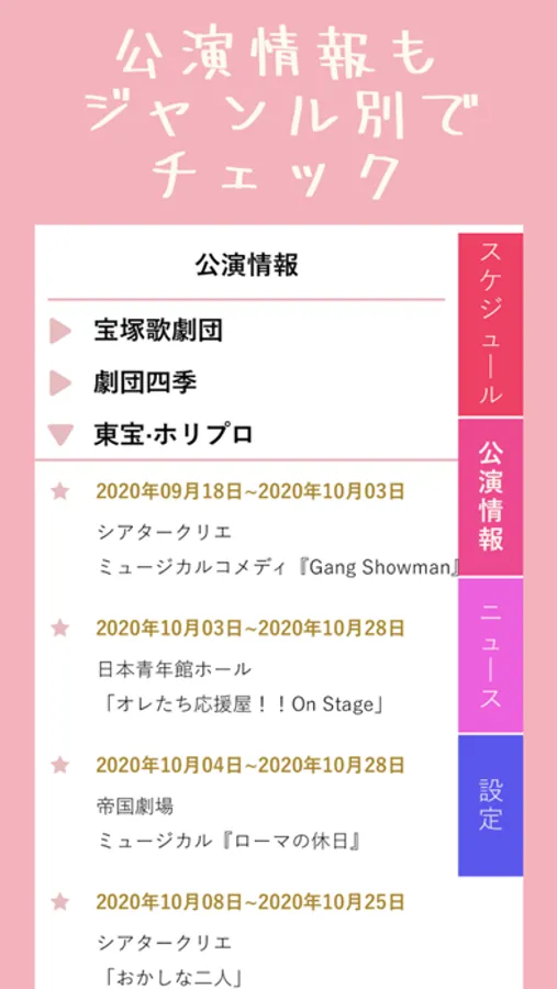 最新のチケット発売情報・公演情報をチェック:宝塚歌劇団から2.5次元まで、ジャンルごとに公演情報を一覧で表示