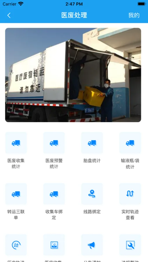 本系统所包含的医疗废物在线监测子系统,实时监测各医疗机构医疗废物收集数据,从不同管理角度对医废收集数据进行统计与分析,全方位监控医废处置业务流程 ,实时推送预警提示多种异常情况,实现对医疗废物透明化、规范化、标准化管理。