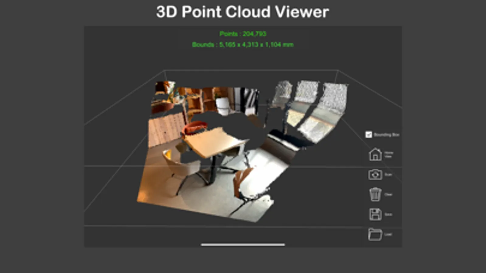 This app can acquire 3D point clouds using an iPhone 12 Pro, iPhone 12 Pro Max, iPad Pro (2nd generation) 11-inch display equipped with LiDAR or an iPad Pro (4th generation) 12.9-inch display or later.