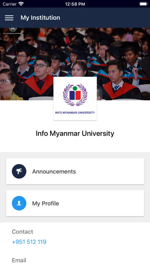This "Info Myanmar University" app is intended for all the stakeholders including all the students, teachers and parents in order to track, monitor and manage the daily processes concerning with the University.