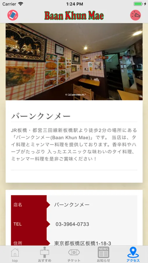 バーンクンメーアプリは、東京都板橋区板橋にあるタイ・ミャンマー料理店「バーンクンメー」の公式アプリです。