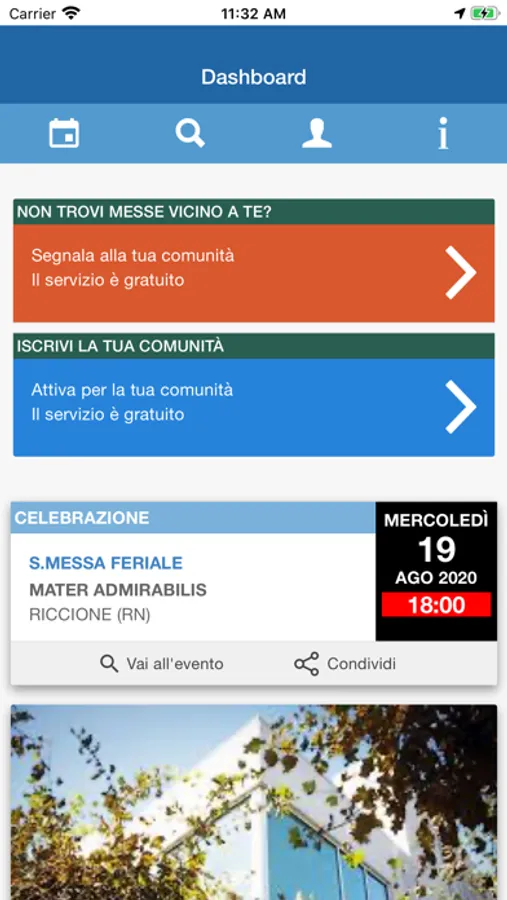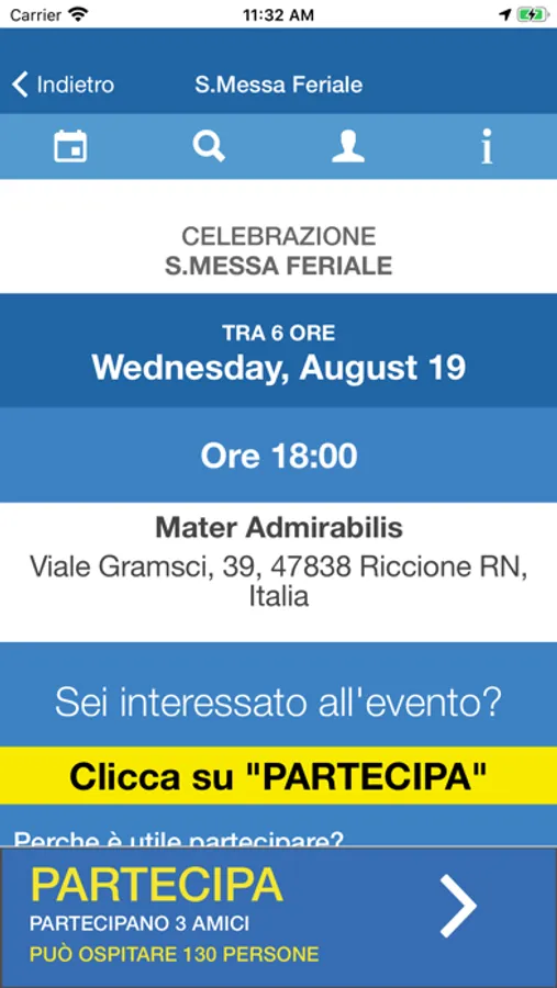 Anzitutto ti Informa cioè ti dice dove, come, quando. Ti avvisa sugli orari disponibili, ti notifica, ti accompagna con Google o Apple Maps, ti informa sulla capienza disponibile della Chiesa o del luogo di incontro più vicino ed eventualmente ti propone la Messa successiva o il momento formativo a te più adeguato.