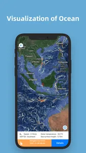 5.Ocean currents forceast: support access to current speed, direction, temperature, salinity data of both superficial current and 50 varied depths currents.