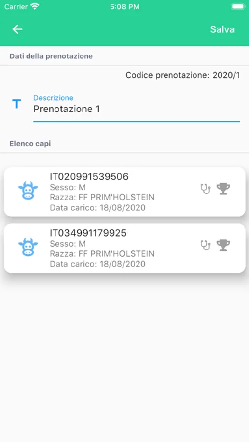 Applicazione utile ai fini della prenotazione di un uscita di stalla dei bovini.