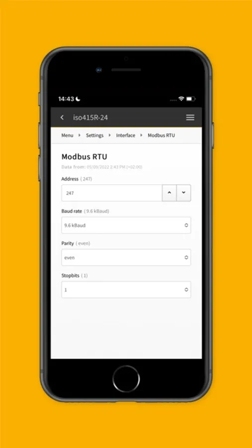 Even before installation, you can easily configure our devices with the Bender Connect app. You can set response values and the alarm threshold or assign the correct Modbus address. If you need to replace a device, you can also transfer the parameters of one device to another by means of a backup.