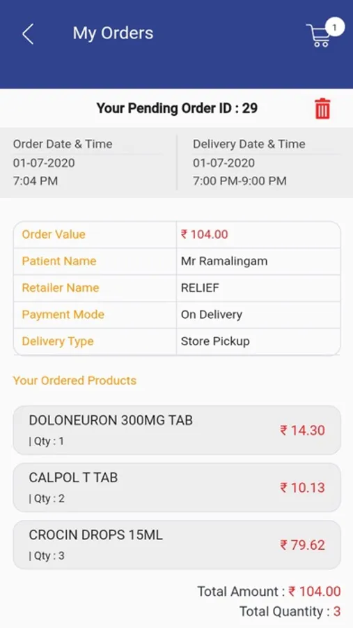 6. Search the Stock availability of a medicine. Place your order from the store where stock is available for guaranteed delivery.