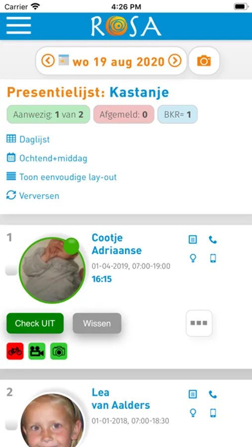 - Momenten van de dag snel en eenvoudig bij het kind registreren