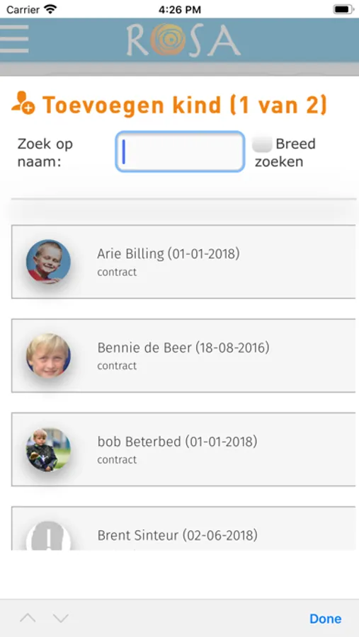 - Foto's kiezen of direct nemen en versturen naar verschillende ouders