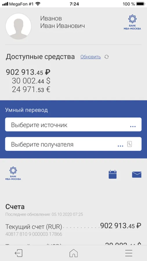 С помощью мобильного приложения Вы сможете эффективно управлять Вашими личными финансами: контролировать поступления и расходы по Вашим счетам и картам, переводить деньги, оплачивать коммунальные услуги и доступ в интернет, пополнять счет мобильного телефона, формировать выписки и статистику расходов за отчетный период, получать актуальную информацию о курсах валют и др.