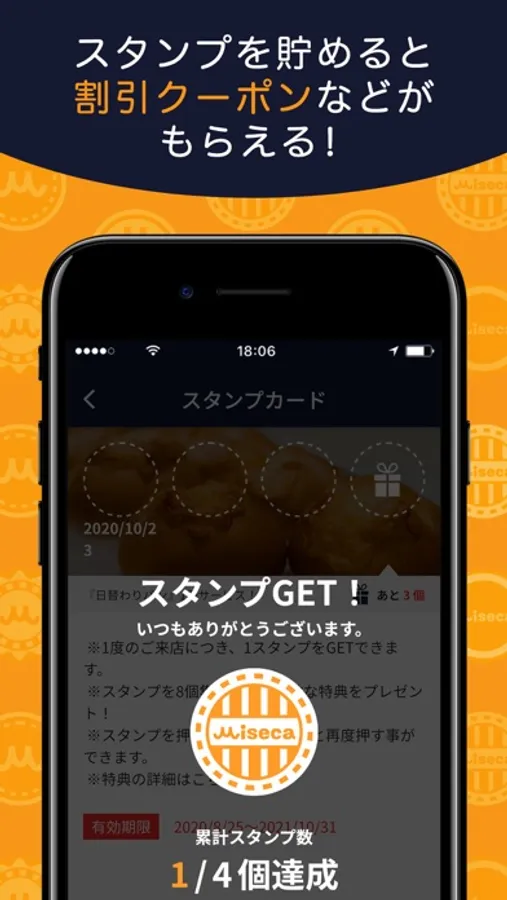ためた数によって、お得な割引クーポンやトッピング無料券などスペシャルな特典がGETできます!