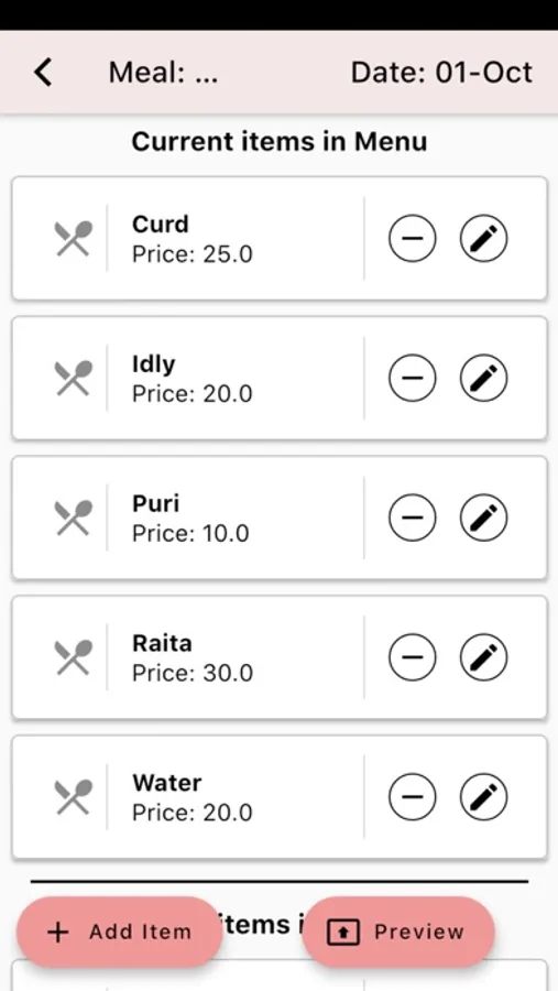 - Create Menu according to meal types and time.