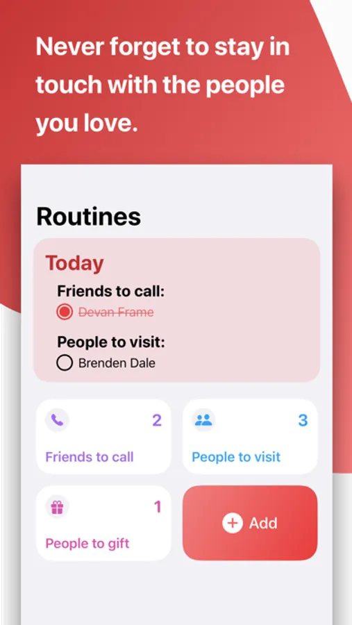 The app has two main sections, Routines and reminders. So you can organize your schedule and always have the perfect timing for connecting with people.