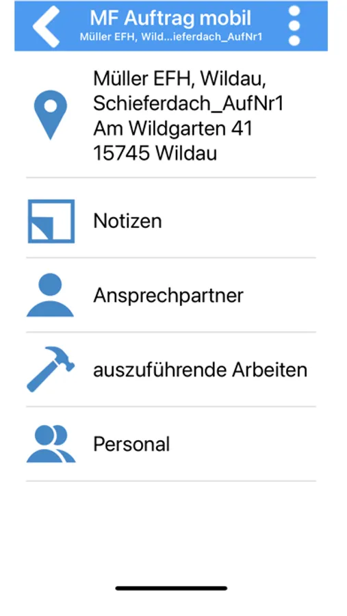 Diese können auf Ihrem Mobilgerät Materiallisten, auszuführende Arbeiten, Baustellenadresse und Notizen einsehen und