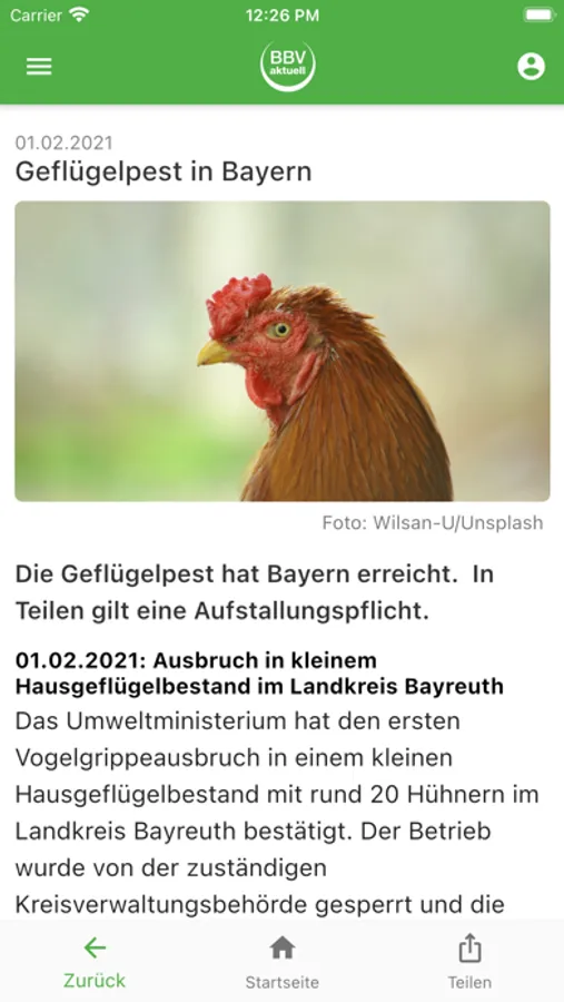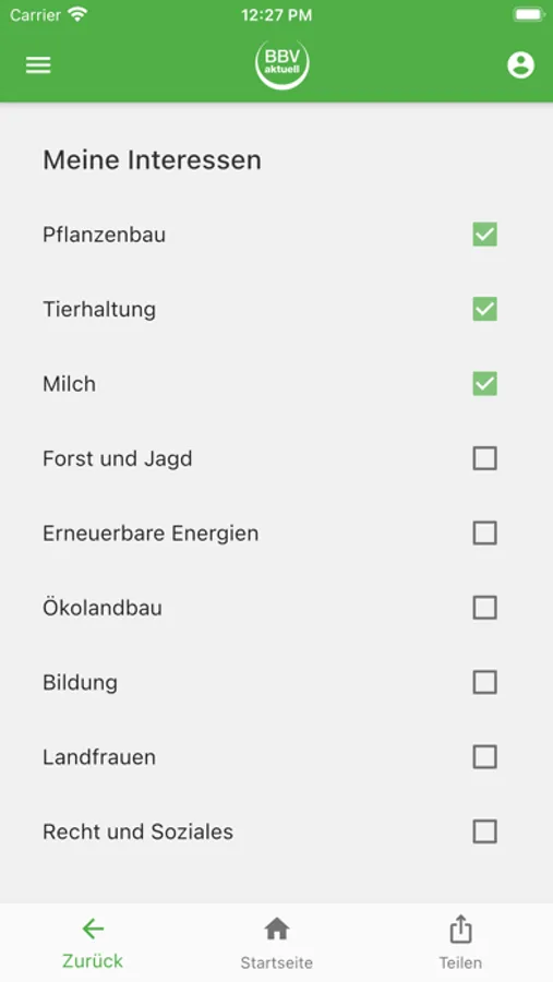 In der App fließen die bewährten Informations-Kanäle des Bayerischen Bauernverbandes zusammen: Meldungen von der Website und exklusive Fachinformationen (z. B. BauernInfos). Zudem kann man, wenn man als Mitglied angemeldet ist, auch Meldungen lesen, die nur für Mitglieder gedacht sind. Und das Beste daran: Auf Wunsch werden Meldungen aktiv aufs Smartphone geschickt