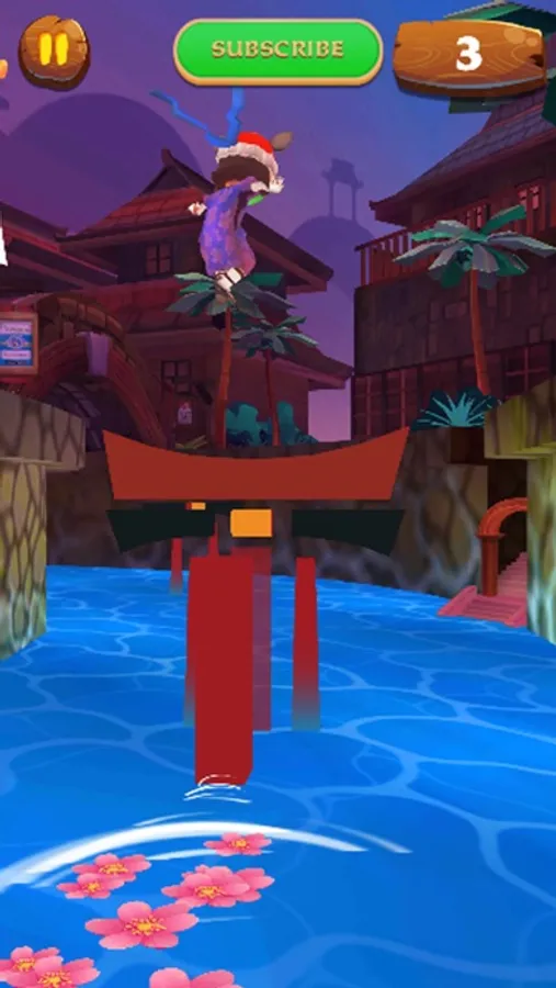 The journey continues with The Adventures of Kimaki! Along with his new found love, Kimaki must now cross through deep blue waterways with the help of their magical staffs. Glide through the water while jumping over the gateways. Be careful! Pay attention to the length of the staff to go through the gate! Are you up for the challenge?