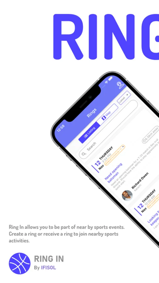 Our platform allows you to be part of nearby sports events, create a ring, or receive a ring to join nearby sports activities.
