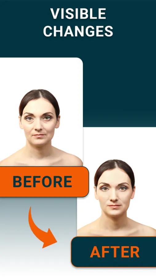 We make different faces of emotions thorughout the day and get wrinkles from laughing, frowning or being surprised. This face yoga app has different facial muscles exercises, like face yoga for smile lines, face yoga for eyes, face yoga for frown lines, face yoga for jawline, face yoga for cheeks, face yoga double chin exercises. Do these exercises, get rid of the wrinkles, get rid of double chin and see the results in such a short time!