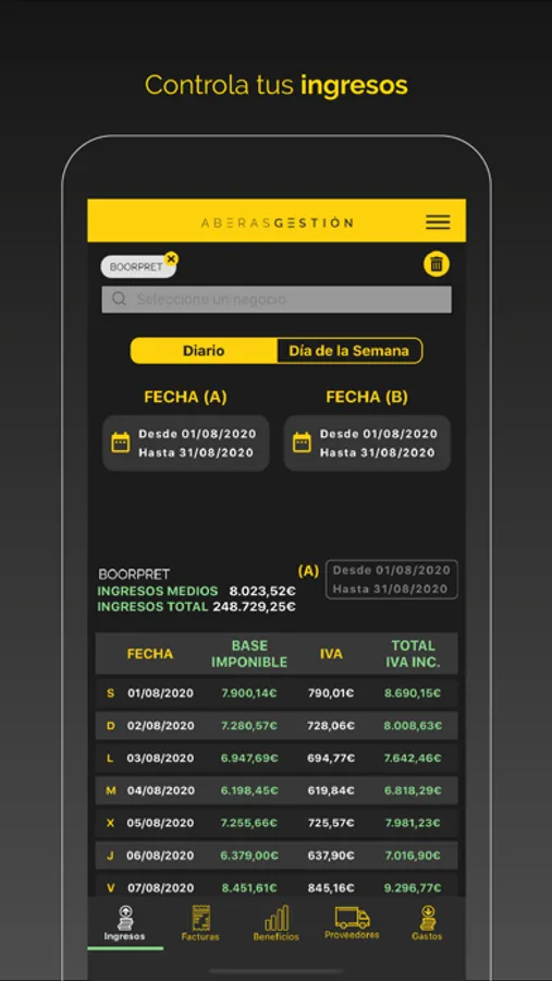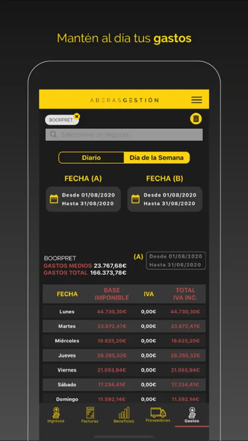 Todos los ingresos y los gastos se actualizan al día, de tal manera que puedes comparar los datos a diario con la semana anterior, el mes anterior, el año anterior o la fechas que quieras.