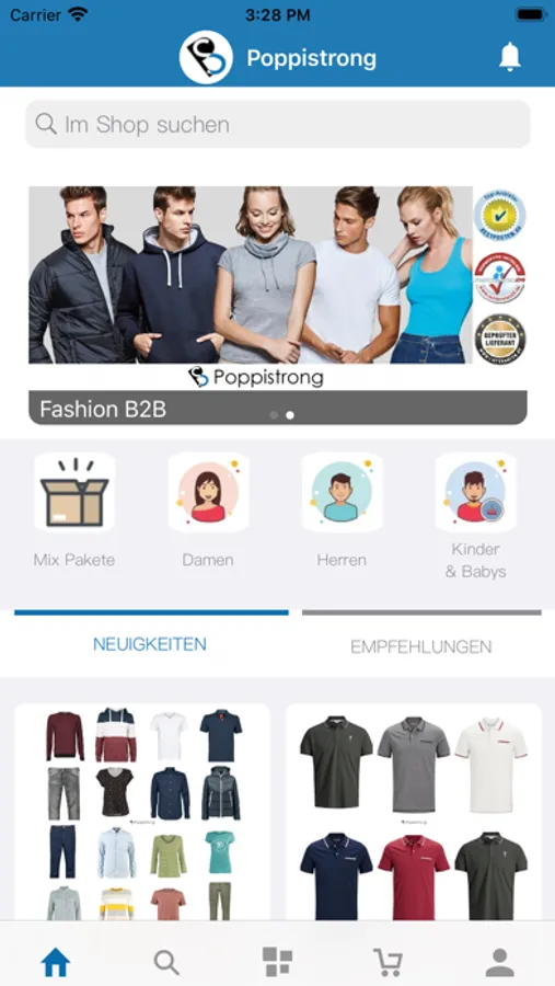 Restposten Mode für Damen, Herren und Kinder mit der Poppistrong App shoppen! Hier finden Sie alles rund um Fashion im B2B Bereich. Wir bieten günstige Bekleidung und Schuhe im Großhandel an. Ideal für Online Wiederverkäufer, Outlets, Boutiquen, Märkte etc.