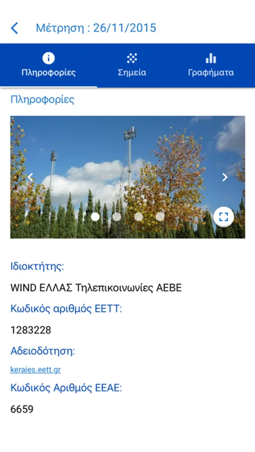 The app e-κεραίες is owned by the Greek Atomic Energy Commission (EEAE), the national competent radiation safety authority. You can now access through your mobile phone or tablet thousands results of electromagnetic fields measurements, carried out by EEAE or authorized external contractors, in antenna base stations all over Greece.