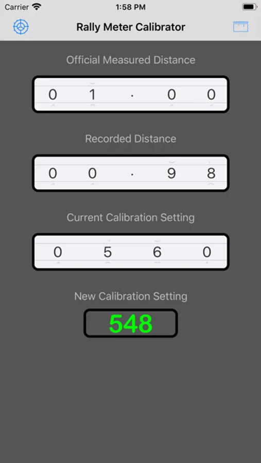 The RallyMeter Calibrator allows you to enter the official measured mile distance, your measured mile recorded value, and current calibration value (where applicable), and gives you the correct calibration setting or adjustment for the event and your vehicle.