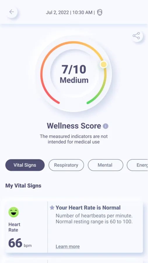 Binah Check is a wellness monitoring app that enables you to measure vital signs in a matter of seconds, at any time and from any location using your smartphone or iPad, and even an external PPG sensor.