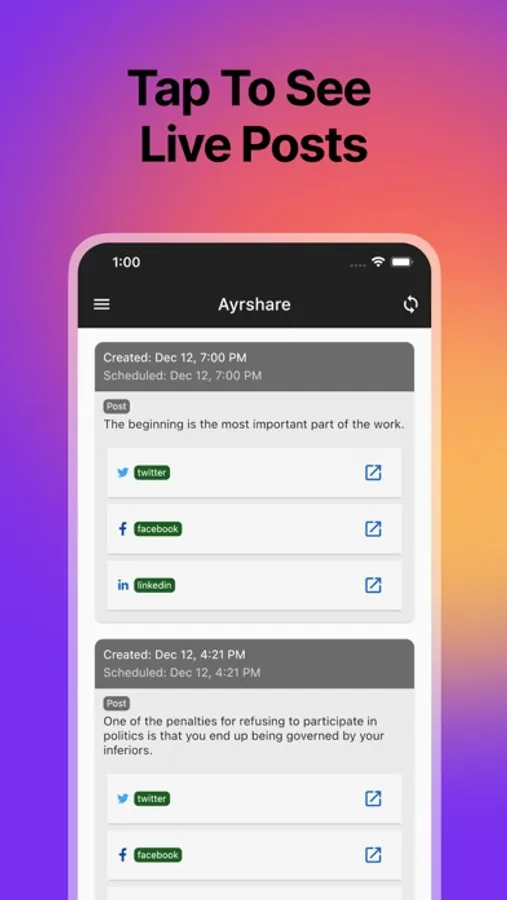 This app is only for existing customers of Ayrshare.