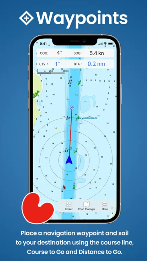 - place and sail to a navigation waypoint using the course line, Course to Steer and Distance to Go.