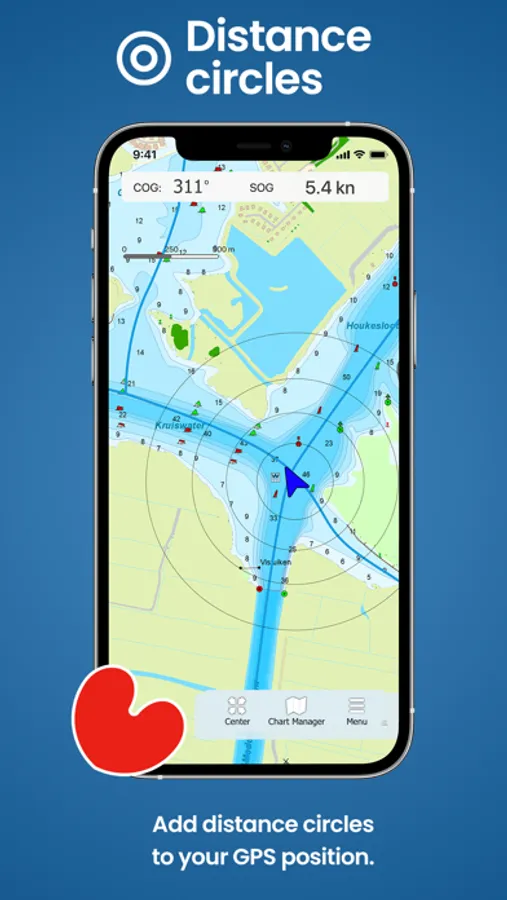 - show distance circles around your GPS position.
