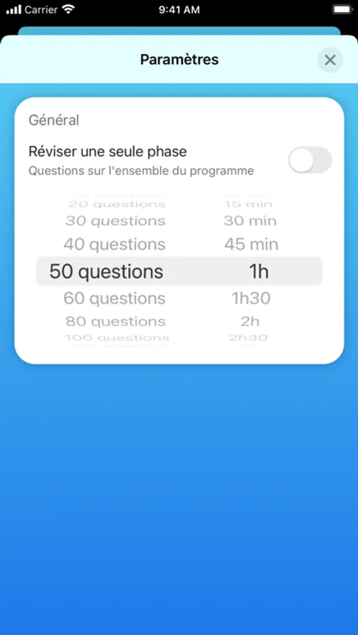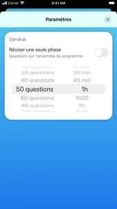 Mais pas uniquement : choisissez votre chronomètre, nombre de questions ou encore la phase sur laquelle vous souhaitez vous tester