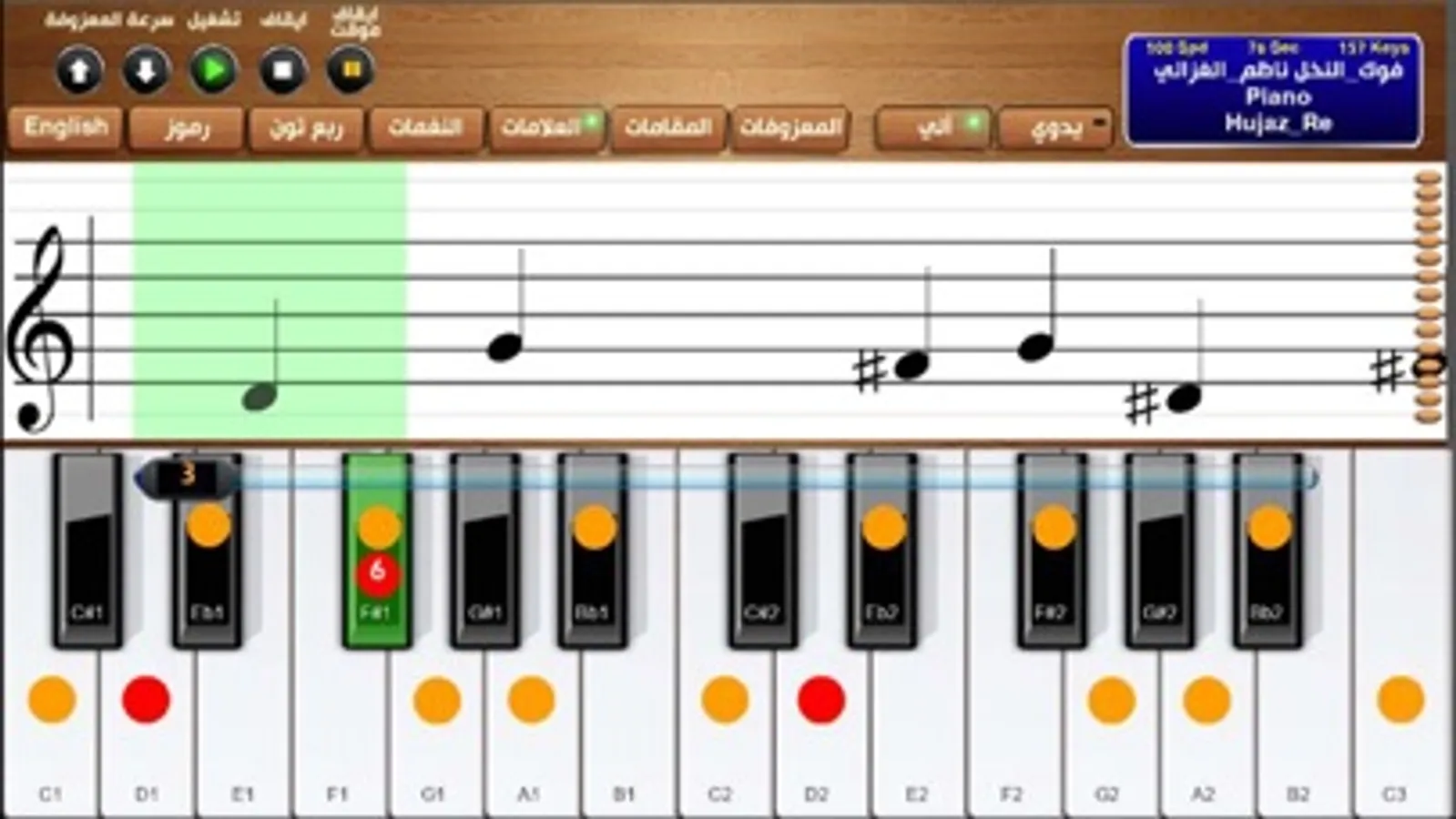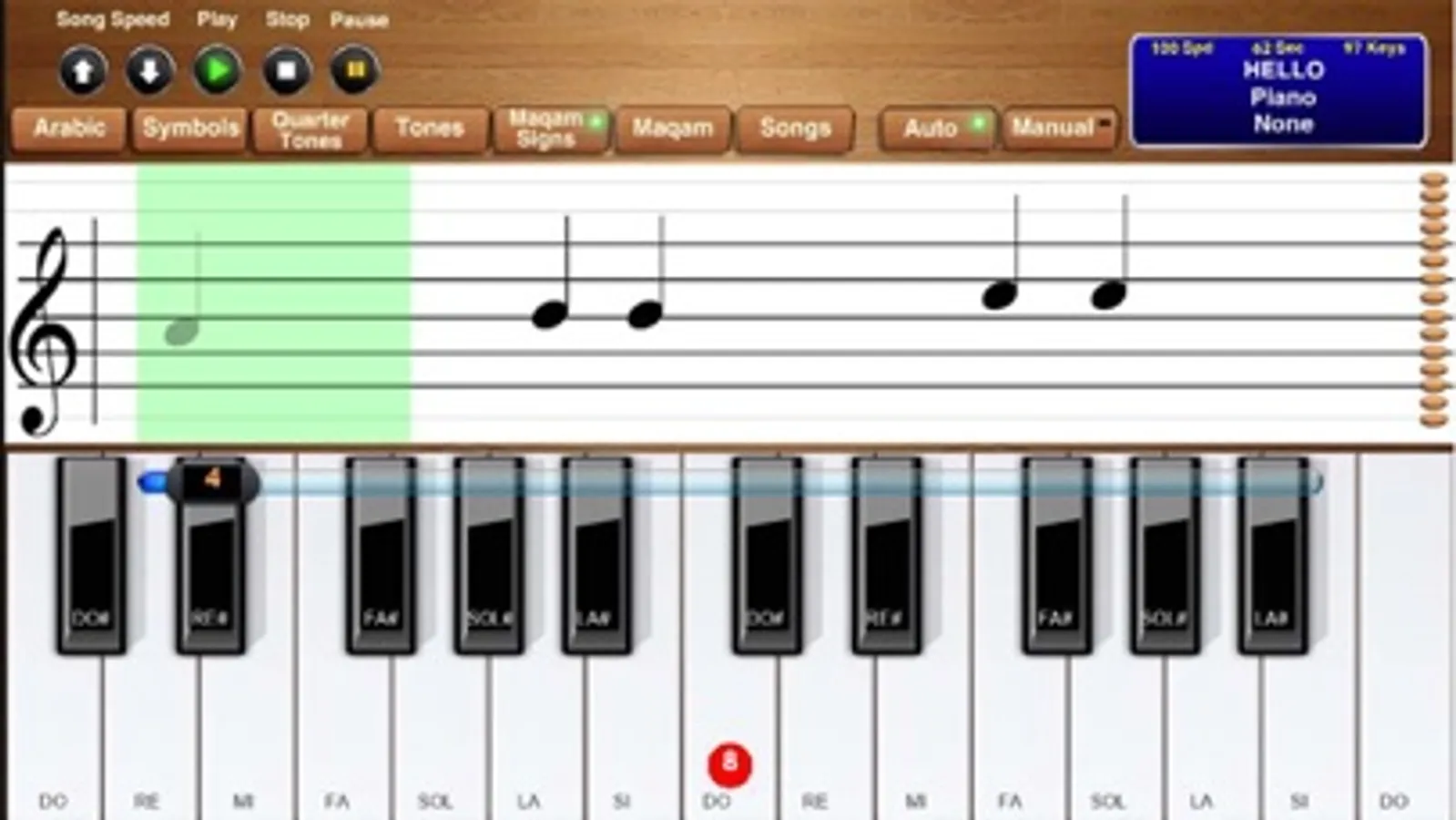 The application of a Music Notes Learning contains two ways to deal with the first application by playing automatically, which is that the application plays the songs play while you only watch, which enables you to understand each tone and its place on the chart, or choose the hand playing where the musical score will stop in the green area, and this method is very important to test the ability of the individual On reading the note and translating it into a hit on the piano keys, which leads to continuing playing.