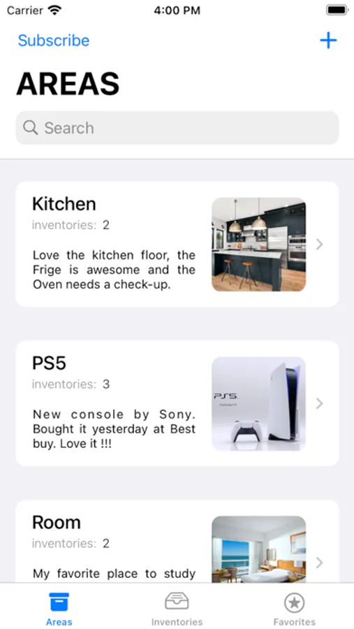 Think of them as check-lists with extra power and flexibility. They represent specific details for each Inventory. You also schedule a reminder for each Item.