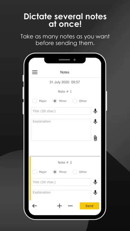 The user can attach photos, a video or even an audio recording to the note, allowing the exact description of the problem in a clear and comprehensive manner to eliminate any ambiguity or risk of error.