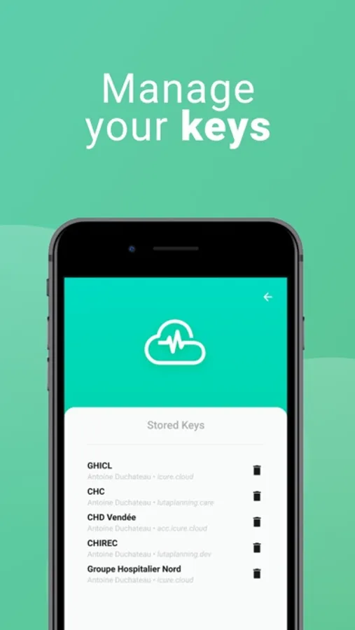 Applications created on top of the iCure platform are built around strong end to end encryption for the protection of sensitive data. To prevent any loss of keys that could induce a loss of data, iCureAccess safeguards your certificates on your phone or tablet. iCureAccess allows you to connect to iCure platform applications by scanning a QR code.