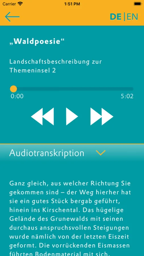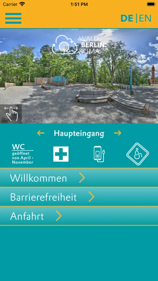 Wald.Berlin.Klima. – The inclusive, free-of-charge app offers digital content that supports your visit and can be played automatically. It also offers information on how to get to the exhibition and service facilities along the exhibition route. The easy-to-use app also provides offline access to all digital content along the exhibition tour: