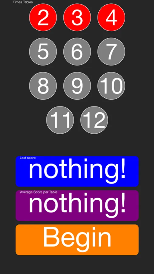 Simply select the times tables that you want to be tested upon and tap begin! Score up to 50 points per question by answering as fast as you can!