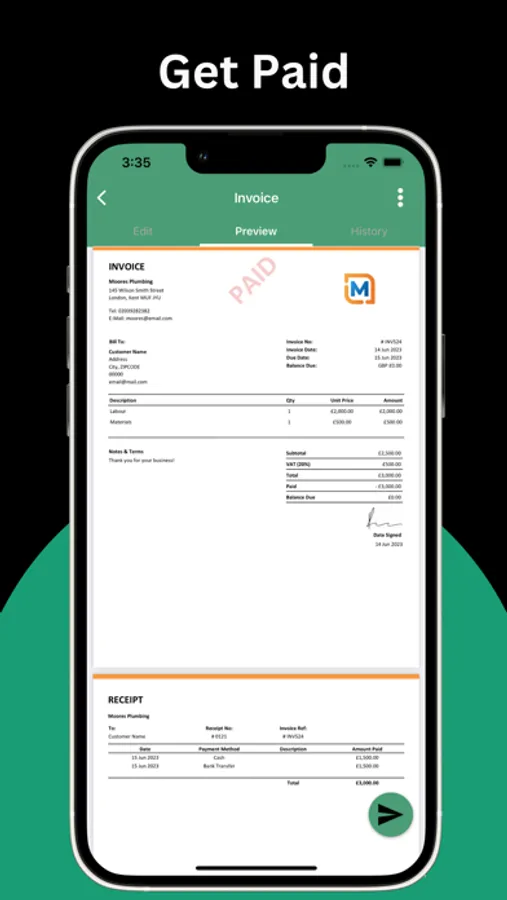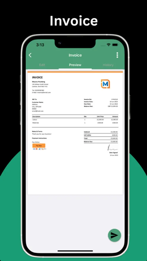 - Tailor professional PDF invoices to reflect your brand by adding your logo and send them with ease using just a few clicks