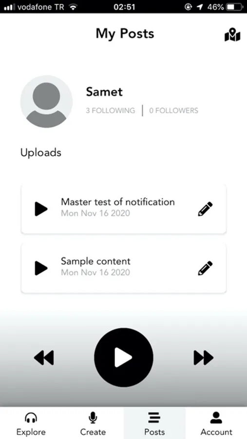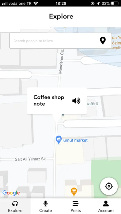 Create: In a few simple steps create voice recordings for your friends or audience to find in the location you choose. Posts are one minute or less, making it easy for people to stop and experience what you have created.