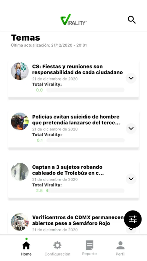 La app te proporciona lo más viral, lo más relevante de tu comunidad. Se mostrará un listado de los temas más populares de los cuales la gente comenta más y más. Podrás ver las ligas a las publicaciones originales sobre cada tema y el análisis de lo que dice la gente en redes sociales, proporcionado por nuestros expertos.